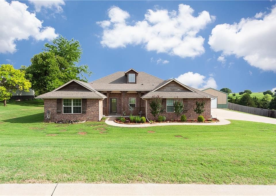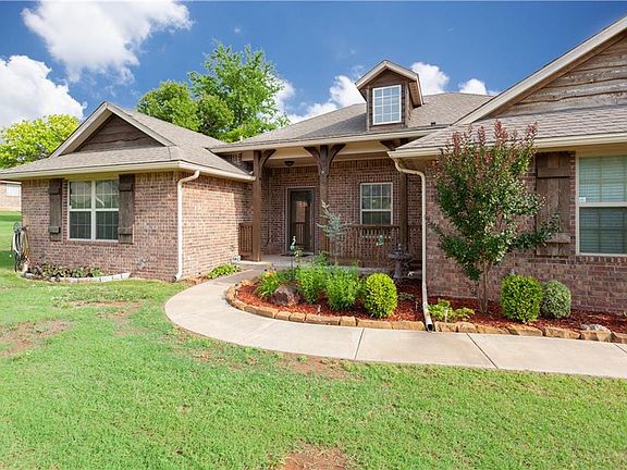 Beautiful home on wooded acreage lot with work shop. Awesome view from large covered patio. 24 x 30 shop has a concrete floor, 110 + 220 amp electric. Granite tops, breakfast bar and walk in pantry are featured in this beautiful kitchen that is open to the living and dinning. Safe room in garage. Full guttering. Easy access to I-35.