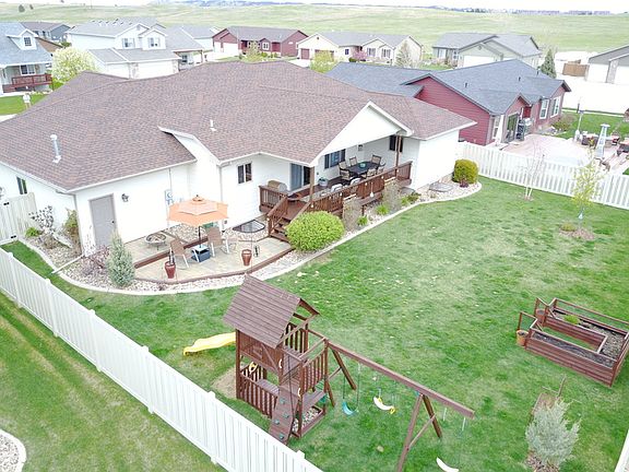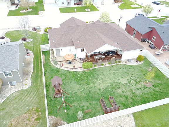Listed by Ryan Olsen, Boost Realty 605-389-3737. Red Rock Meadows home with class! Sharp curb appeal in quiet cul-de-sac. 2 blocks to neighborhood park. Oversized, heated and insulated 3 car garage features shop space and built in shelving for storage! Enjoy your fully fenced backyard with maintenance free fencing, raised garden bed, kids playset, and awesome covered deck with sun shades for entertaining and barbecues. Hardwood flooring and tasteful fireplace insert. Kitchen features breakfast bar, large pantry, and plenty of cupboard space with gas range and stainless steel appliance package. 9 foot trayed ceilings. Large master suite with dual sinks, jetted tub and walk-in closet. Bedrooms are nice sized with large closets. New shingles, fresh paint inside and out make this home move in ready!