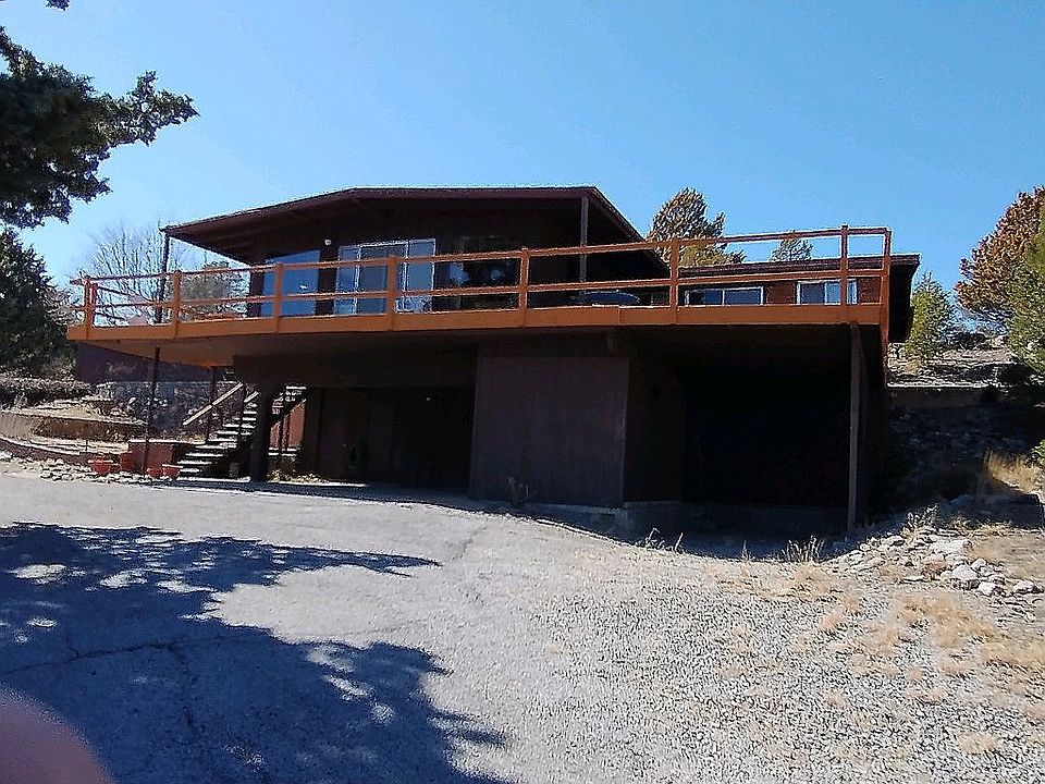 Beautiful wooded lot close to town with long range mountain views. Secluded feel with upper level parking near door for easy access and handicap accessibility. Location, location location. This home is built with what appears to be baked adobe by looking at the thickness of the walls and will need someone who is willing handle decking and roof work. Priced accordingly, to give you that opportunity to build equity. Covered parking for 6 vehicles. A truly classic home.