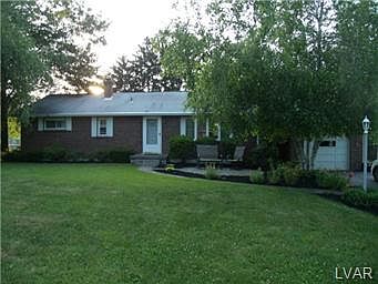 Well maintained brick ranch in beautiful Center Valley area, featuring 3 bedrooms, 2 baths, attached garage, large family room in lower level, nice level lot with front stone patio, newer trex deck in rear leading out to large 24' x 54" extra deep pool, large shed, close to everything.