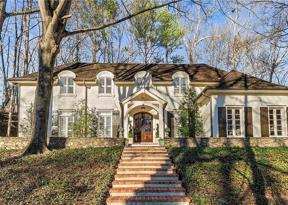 Amazing opportunity for an updated French country style home on over an acre of private land with a pool in desirable Buckhead neighborhood. Features include herringbone brick foyer, antique wood beamed ceiling in family room, refinished walnut hardwoods, an abundance of natural light throughout. Bright eat in kitchen with Spanish tiled flooring, granite island, stainless appliances. The most charming brick paver, covered patio off of living area perfect for relaxation. Family room with built in’s, cozy gas log fireplace. Separate dining room and den. Heated pool with fun cabana perfect for entertaining. New pool decking w/ turf, professionally landscaped back yard. Spacious primary suite with sitting area, private deck, huge walk-in closet, double vanity, separate tub/ shower. Brand new driveway! Large unfinished space on 2nd floor can easily be finished for extra flex space, gym, or office. Located minutes to the top area private schools, award winning Jackson school district, I-75, amazing restaurants, shopping, The Battery. Whitewater Creek is a very special gem of a community adjacent to the Chattahoochee River, walking trails, Whitewater Creek Park.