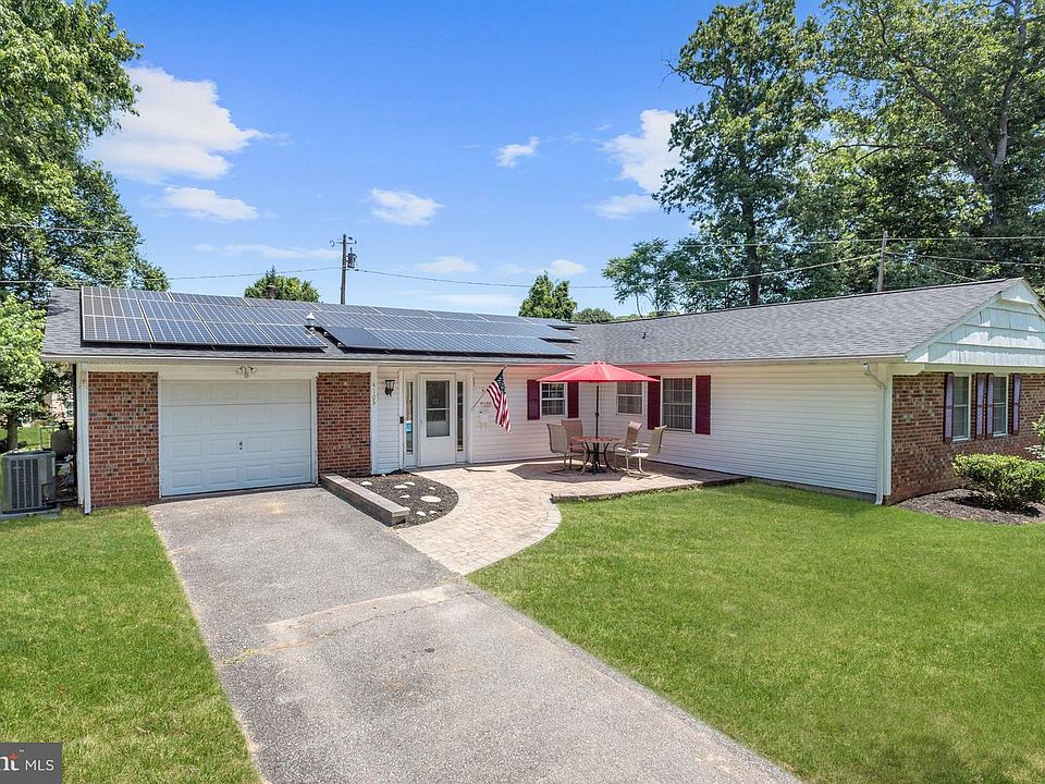 Beautiful ranch on a quiet cul-de-sac features an in-ground pool in sought after Whitehall at Belair Neighborhood. The large foyer welcomes you into this sun-filled home. A sizable dining room hosting sliders to the patio and is perfect for entertaining. The eat-in kitchen is adorned with granite counters, breakfast bar, pantry and ample solid wood cabinets. The family room is both stately and massive and includes stone walls, walls of sunny windows overlooking the pool and a grand wood burning fireplace. A main level primary bedroom has two bright exposures and an en-suite bath with a modern shower. There are two additional generously sized bedrooms each with their own slider to the outdoors. There is a main level laundry room with front loading washer and dryer. Outside you will find a stunning in-ground pool, a large patio surround, a gazebo all inside the completely private fenced rear yard. 1-car garage and driveway for multiple cars. Solar panels will help with your electric bill. (Solar Panels are leased)