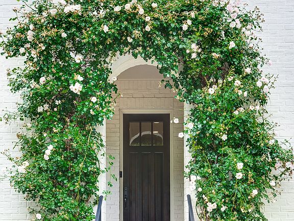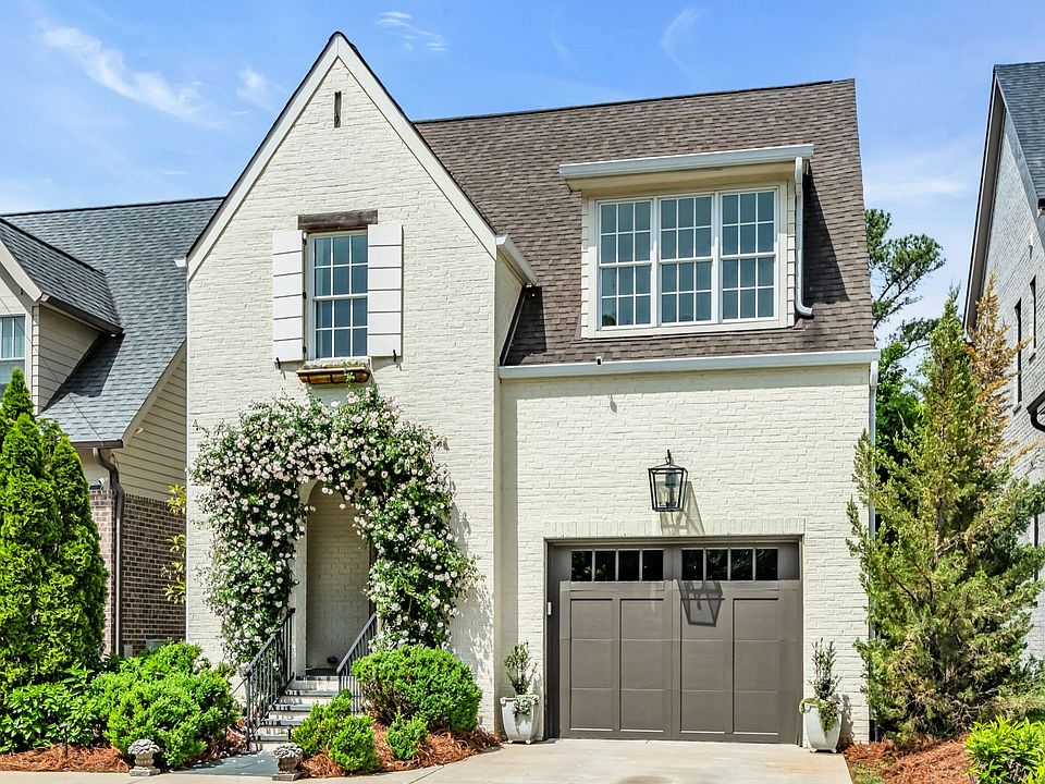 Welcomed by climbing roses, this charming Green Hills home built by Baird Graham in 2015 is filled with beautiful moments and multiple idyllic outdoor living spaces. Hardwood floors throughout lower level with open living, dining, and kitchen. The kitchen features marble countertops, Kitchenaid stainless appliances with pot filler, and eat-in kitchen island. Built-in bookshelves, fireplace w/ fireballs, and high ceiling in living room. Main floor primary suite features a separate bathtub and shower with dual vanities and plenty of cabinet space with adjoining walk-in closet. Upstairs features bonus room, two bedrooms conjoined with a large jack-and-jill bathroom, and an ensuite bedroom. The back screened-in porch features dual swinging daybeds and leads out into the private brick pergola-covered courtyard with grill and stone countertops. Stepping stones from the courtyard lead to backyard with spacious lawn, flagstone fire-pit and sitting area, and shed.
