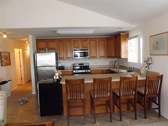 A gem on the west side is this never rented 3 bedroom, 2 bath, top floor, corner unit condominium. The largest floorplan in the 6 unit complex provides more than enough space for family and guests. Open living room and dining area with cathedral ceilings complete with recessed lighting and ceiling fans. Well appointed kitchen, with counter seating as well as a dining area lets you feed an army. Let the sun shine in and the sea air flow through side, front and rear windows. If you still need more air, open the slider or sit on the private fiberglass deck, also a perfect spot to watch Boardwalk Fireworks during the summer. Spacious master bedroom with private bath and two more large bedrooms make this a perfect fit for an expanding family. Beside space and windows, this unit also has plenty of storage both in the unit and downstairs in the shared garage. Unit 200 has left side. Rear storage room in the garage is perfect for bikes and beach gear plus park 3 cars in the garage alone and there is still another closet for storage. Outback, there is an outside shower to wash away the beach day. Unit is being sold AS IS and unfurnished. Items in the garage including the golf cart are NOT included in the sale. Owners in Association share exterior maintenance responsibilities. Quiet street with newer construction and renovations all around. Unit is easy to show with a lockbox but you do need to call Listing Agent.