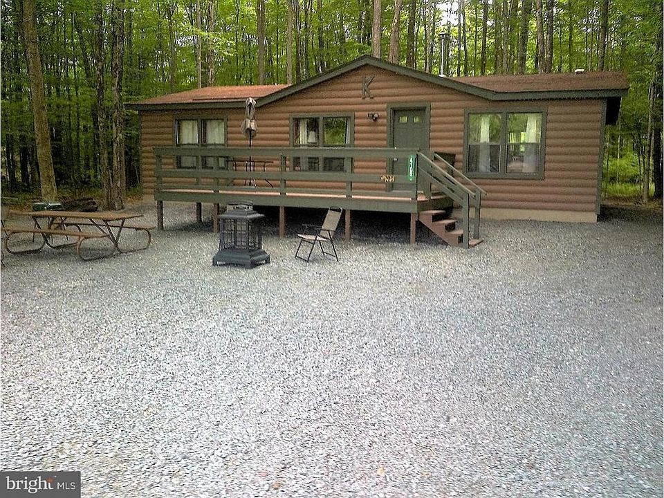 Immaculate 3 bedroom log cabin in exclusive Arrowhead Lakes is just a few steps away from Minisink Pool. Great established rental income! The sundrenched living room features dramatic vaulted ceilings, Pergo floors, cozy wood stove, & modern ceiling. The bright kitchen boasts plenty of oak cabinetry, gas stove, double sink, and leads to the bright dining room with chair rail and custom paint. The open layout is perfect for entertaining. The expansive master suite is complete with Pergo floors, walk-in closet, and remodeled bathroom with ceramic tile flooring! The additional lovely bedrooms are also spacious, with large closets, insulated windows, & Pergo floors.This gated community offers 2 lakes, 4 beaches, 3 pools, basketball court, tennis courts, volleyball, playground, fitness center, and spectacular lodge.Arrowhead's amazing lodge boasts a stunning reception/entertainment area, outdoor eating area, gym, craft room, library, media room, billiards, and so much more. The main banquet hall features dramatic, floor-to-ceiling stone fireplace, commercial grade kitchen, dance area, and spectacular view of the lake. The library has a media room with large screen tv, game room, and hardwood floors. Plenty of things to do... at Camelbeach, Camelback, Jack Frost/Big Boulder, Kalahari, Knoebel's, Mt Airy Casino, the Crossings Outlets, and charming village of Jim Thorpe. Conveniently located minutes from 940,115, I-80, and the PA Turnpike.