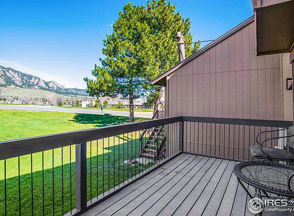 Beautifully remodeled end unit townhome with stunning views of the flatirons! Lovingly updated with bright, new kitchen - stainless appliances and farmhouse sink. 3 bright bedrooms upstairs with glorious new master bath, complete with claw foot tub and rain shower! Finished basement has rec room, spacious laundry room with built-in shelving for storage, and additional bath . Cozy, wood burning fireplace and all new laminate flooring. Gorgeous, extended west facing deck looks out to green space with views of the flatirons. Brand new electrical panel and surge protector panel. Charming front patio is perfect for morning sun or shade in the evening. Garage has built-in loft for extra storage! Additional side parking spot gives unit 2 dedicated parking spaces. One of the best units in the complex!