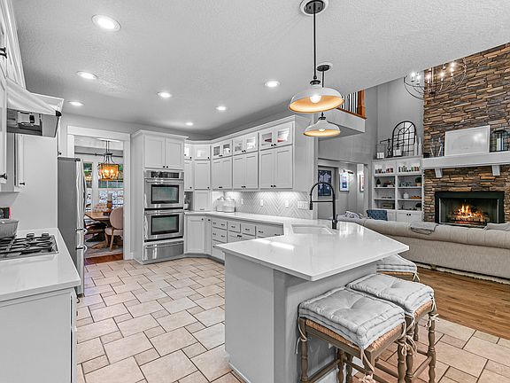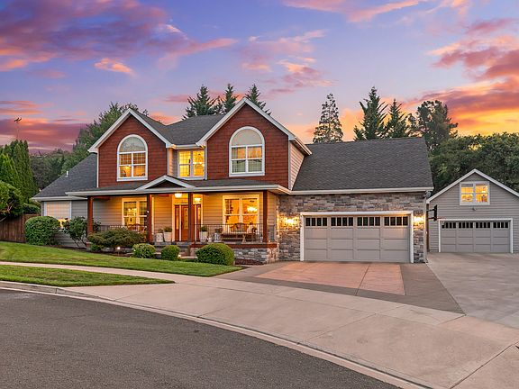 Tucked away on a peaceful East Medford cul-de-sac, this beautifully updated home offers style, comfort, and functionality. Lush landscaping and inviting curb appeal invite you inside, where thoughtful upgrades shine—from the modern kitchen and spa-like primary bath to designer lighting and a custom banquette. The great room impresses with soaring ceilings, a stacked-stone fireplace, and lighted built-ins, while a main-level office with glass pocket doors provides privacy. The 2nd level space features three additional bedrooms and a spacious bonus room. Step outside to your private retreat with mature landscaping, a generous lawn, in-ground pool, and hot tub. A rare highlight is the detached second garage with a fully equipped guest suite above, which includes a kitchenette, full bath, and private deck. Every detail has been carefully curated, making this property a timeless gem in one of East Medford's most sought-after locations.