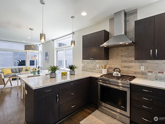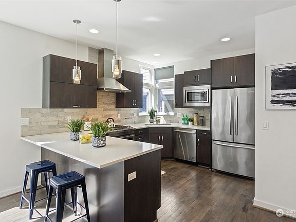 Sought-after house in Fremont, conveniently located just minutes to shopping/restaurants, highway, Zoo/Greenlake, and Seattle Downtown. The home features modern finishes throughout and an abundance of natural light from floor-to-ceiling windows, tall ceilings, hardwood flooring, a cozy fireplace, and one assigned off-street parking. functional floor plan includes two bd on the main floor sharing a bathroom. The 2nd floor has an open floor plan connecting the living room, dining space, and fully stocked kitchen with all stainless steel appliances (gas stove with range hood). An oversized master bedroom on the top floor features an oversized en-suite bathroom and walk-in closet. A large rooftop deck offers stunning views. No HOA.