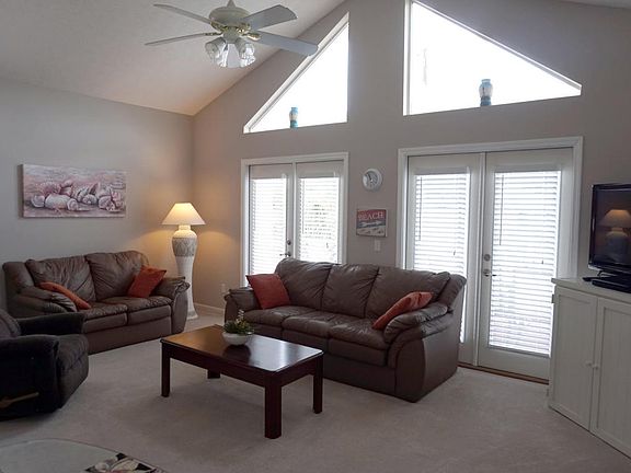 LOCATION!...and within feet to beautiful Gulf of Mexico beach access!Sold furnished and ready to move in to enjoy year round living - vacation home or investment property...this 3 bedrooms, 2-1/2 baths home offers a spacious open floor plan with cathedral ceiling in living/dining area and 9' ceilings throughout;fireplace, double car garage, plenty of storage space; fenced back yard and even a small Gulf View from upstairs open deck and NO Mandatory Homeowner's Association/Dues! This immaculate home has never been rented/one owner...plus conveniently located to Restaurants, Shopping, St.Andrews State Park and Marinas. Dive helmet in alcove and some personal belongings do not convey with sale.