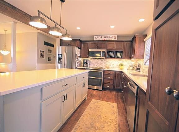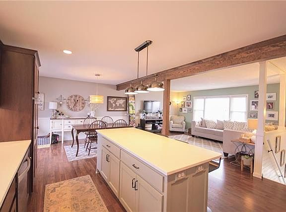 Fully remodeled home w/ 4 car+ garage space, large corner lot & walk to West Indianola Elementary in Seaman School District. Enjoy Custom Woods Walnut kitchen, Quartz countertops, slide outs, soft close doors, dual slide in range + micro-oven included and open layout. True wow in this price range. Large Master w/large tile master shower and updated colors and style. New roof 17, furnace 18, water heater 13, and newer windows also. Great deck and hardscape area with playset. Second garage is over sized.