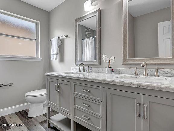 Ahh! The smell of a freshly renovated home in the morning... or afternoon... or evening! This home is bright, airy, open and ... LONELY. It only needs YOU to make it whole. Beautifully renovated on the inside AND the outside. You will LOVE the care and detail taken to make this house a perfect match for YOU. The kitchen is white and blue shaker, quartz countertop and brand-new stainless appliances (of course) with new LVP throughout. The tile choices in the kitchen backsplash and both bathrooms will BLOW you AWAY. Oh, and did we mention the 12x30 wood deck right outside your back door? AND less than 1000' away you will find the Fort Caroline Community Center and the Lonnie Wurn Boat Ramp. Roof in '17, AC & WH in '23.