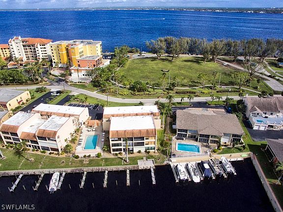 Move in ready gulf access 2 bed, 2 bath end unit with almost 1300 sq. ft. of living area with a large living space and a recently updated kitchen with solid wood cabinets, stainless appliances & granite countertops. The kitchen opens up nicely to the living room & lanai! Enjoy gorgeous sunrise from your screened lanai with amazing water views of the river. Highly desirable location off Beach Pkwy located across the street from Jaycee Park which features jog/bike paths, playground and picnic areas with a riverfront view. This end unit is just a quick trip down the stairs to the pool and canal. Park View II Condominiums had a new metal roof installed in 2018, recently painted exterior, and a brand-new dock was installed with new finger slips coming soon. Slips can be assigned by request from the management company. A/C replaced 2020. Water Heater 2015. This unit did not incur any damage from the hurricane & is ready for immediate occupancy & is being sold TURNKEY (minus just a couple items). Move in & be ready to enjoy for the upcoming season!