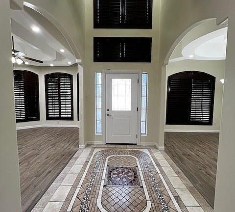 This amazing home has just been renovated & updated with over $40K in upgrades. This 4-bedroom, 3-bath home is located in Sharyland Plantation in Paseo Lindo. It features dramatic tall ceilings, decorator tile flooring & custom shutters. There is a spacious living area with coffered ceilings & a wet bar. There is vinyl plank flooring throughout the home & ceiling fans. The gourmet kitchen features white cabinetry, granite countertops & tons of cabinet & countertop space. Upstairs enjoy a large bonus room. The spacious primary bedroom includes a private bathroom featuring a garden tub, glass block shower and a large walk-in closet. Outdoors enjoy a spacious fenced backyard.