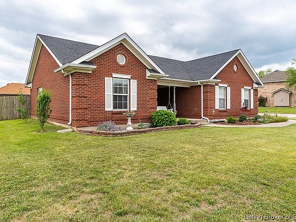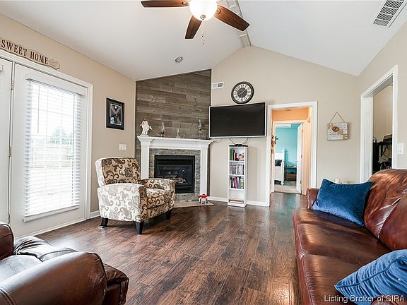 Don’t miss the opportunity to own this move in ready, all brick ranch located in the desirable neighborhood of Silver Glade in Sellersburg. This well-maintained 3 bedroom, 2 bathroom all brick ranch sits on a large corner lot. The welcoming covered porch leads to the great room with a vaulted ceiling, vinyl plank floors, and a corner gas fireplace with shiplap. The primary bedroom has tray ceilings and a large walk-in closet. This home features a split bedroom layout and an eat-in kitchen with pantry. You’ll enjoy the large fenced-in backyard with concrete patio, an established vegetable garden, and two bee habitats. The back porch has a hook up for a hot tub. New roof in 2019. Refrigerator and Stove are not included in the sale of the home. Swing on front porch does not stay. Not all exemptions will convey with sale of home. Sq ft, taxes, & school systems are to be verified by the buyer(s) or buyer's agent if critical to the buyer(s).
