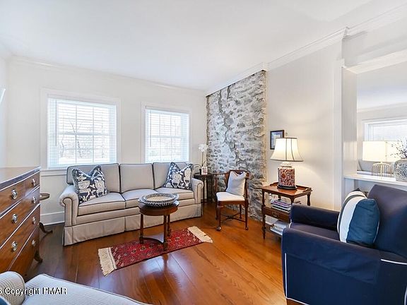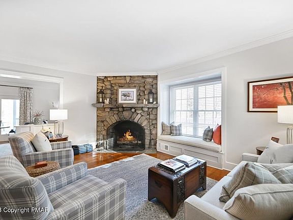 Elegantly appointed home in the historic community of Buck Hill Falls. Sitting on 1.6 landscaped acres with seasonal mountain views, this home features incredible outdoor entertaining space with a large multi-level deck as well as covered and screened porches. Built in the 1930's, the home is full of period charm with a stone wood-burning fireplace, hardwood floors, built-ins and moldings. The open floor plan offers plenty of seating and entertaining space including a living room, library/sitting room, open dining room and den. The remodeled kitchen is warm and inviting with a Garland stove, custom cabinets, walk-in pantry and laundry room. The gorgeous 1st floor master suite features ensuite bath and walk in closet. Upstairs are 6 more bedrooms, 2 baths and finished attic. Ther whole house has been recently painted inside and out and there is a new whole house generator. This house has room for the whole family and there is a huge unfinished dry basement and a two-car tandem garage. This is the perfect mountain getaway only 2 hours from NYC and Philadelphi