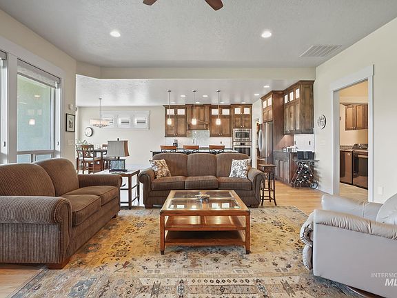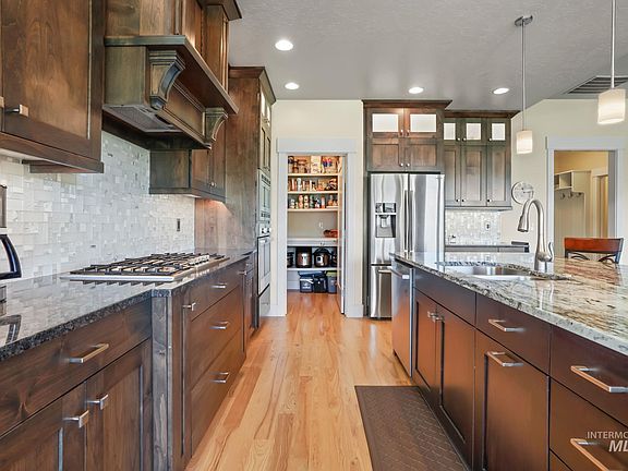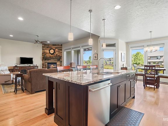 Tranquil waterfront home with mountain views in highly desirable Foxtail Subdivision in Eagle, Idaho! One of the best lots in the development! Top quality construction with beautiful high-end finishes. This home has been meticulously maintained, showcasing pride of ownership in every way. It features 10' ceiling in the great room, floor to ceiling gas fireplace, custom chef's kitchen with Bosch stainless steel appliances, large island, and walk-in pantry with appliance shelf and power outlets. Granite, quartz, and marble countertops throughout. Covered patio and north facing backyard is perfectly shaded for watching the birds, ducks, and geese in the pond behind the house. Spacious and bright 3 car garage has epoxy flooring and mechanical closet with doors to house the HVAC system, water heater, and water softener for a nice clean look. You’ll love that this home is walking distance to parks, community pool, shopping and dining! Location! Location! Location!