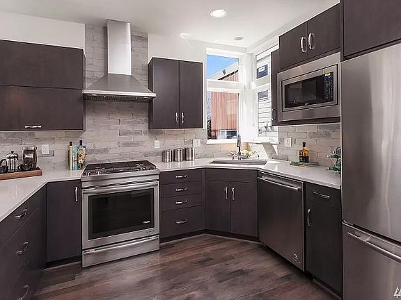 Magnificent newer stand alone modern home in Fremont featuring 3 bedrooms, 2.5 baths, and rooftop views of downtown Seattle and Mt. Rainier! Quartz countertops and SS appliances in the kitchen and second floor great room features floor to ceiling windows and hardwood floors with a floating staircase. Master includes an oversized shower, walk-in closet and air-conditioning. Easy access to the both 99 and 5 freeways, bus lines and walking distance to all the best restaurants that both Wallingford (Joule, Sea Wolf Baking, and Fremont (Le Coin, Rock Creek, Paseo, Fremont Bowl) have to offer. 1 dedicated off-street parking spot included.