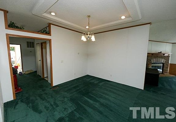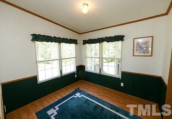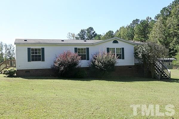Spacious tri-wide on 4.5 acres, over 2100 sq ft and ready to move in. Located in desirable Bahama community. Quiet, peaceful, and a very private setting where the deer and turkey roam. Plenty of room to play inside and out. 3 Bdrms, 2 baths, office/study, sunroom, living room, family room, fireplace and more. Storage building and some nice pasture. String a fence for the pets and call this home. Great area!!!