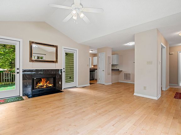 End unit townhome in Five Oaks, the living room has double back doors off to the right for tons of natural light and a gas fireplace. Separated dining area right off the kitchen. The entire downstairs area has lots of natural light perfect for a plant lover. All the carpeting in the home has just been replaced.