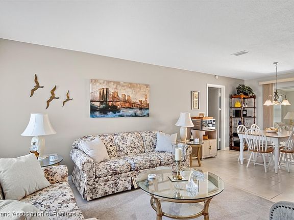 GREAT HOME AT A GREAT PRICE! This completely furnished and well-maintained 2 bedroom, 2 bath, split plan home features a 2022 roof, newer windows and recently painted interior & exterior. Nice, neutral tile flooring flows through the living room, kitchen, dining and family room, with carpet in the bedrooms. The kitchen has a large pantry and breakfast bar, and is open to the dining area. Beyond the kitchen & dining is a spacious family room, with sliding glass doors opening to the backyard patio, perfect for grilling. The primary bedroom has a large walk-in closet and a tiled walk-in shower. The guest bedroom & bath are situated on the opposite side of the home for added privacy. The oversized one-car garage comes with a utility sink, built-in cabinets with a desk area, and screen doors to allow you to open it up while working in the garage. Outside is a lush, green lawn with decorative concrete curbing, and a covered walkway leading to the front entry. Located in the community of Sun 'N Lake, you can enjoy two golf courses, a restaurant, community center, swimming pool, tennis, pickleball, a playground, and much more; while living close to the hospital, doctor's offices, school and shopping. CALL TODAY! THIS ONE WON'T LAST LONG!