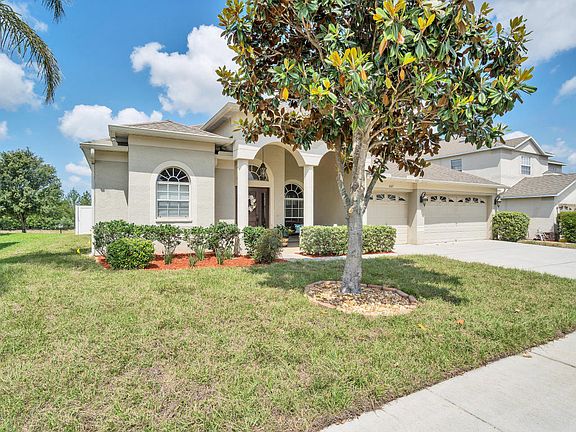 BACK ON THE MARKET!! Financing fell through! Lovely and large 5/4/3 split plan in the heart of Spring Hill. Gated, great school options, clubhouse, pool, basketball, tennis, bike and walking trails are just the beginning. This home comes with 5 full bedrooms, 4 full baths, granite in kitchen and baths, crown moldings, upgraded lighting and fans, large master with walk-in California closet system, separate tub and shower. Lots of windows and natural light. Upstairs a large bonus room, 5th bedroom and another full bath. Use your imagination, this house has it all! New sod, electrical upgrades, water softener, charming front porch, large patio in back and fenced yard with view of retention area. This is a must see!