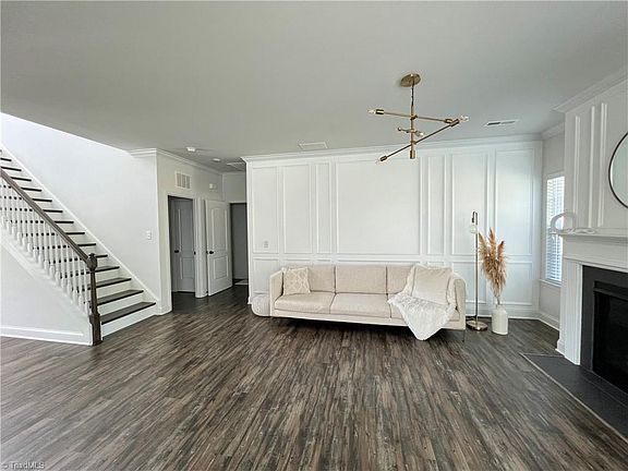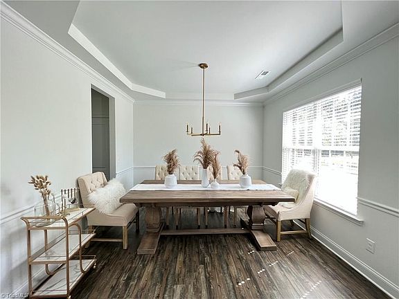 Perfect setup with masters downstairs and 3 additional rooms upstairs with a large loft/game-room! The 9 foot ceiling with beautiful crown molding along with originally designed wall panels creates a unique experience guests will love as they walk on engineered hardwood floor. A must see kitchen with white quartz countertops, golden globe pendant lighting, white backsplash that is accentuated with under cabinet lighting. Master bedroom on main floor with tray ceiling, dual vanities in bathroom, separate shower and tub with a large walk-in closet! Upgraded microwave with vent outside, kitchen sink garbage disposal, upgraded dishwasher, walk in separate laundry room, Taexx built-in pest control system within walls. Double insulated windows and insulated garage door equals energy savings! Green well-manicured lawn. Located within 15 minutes of Winston Salem downtown, Wake Forest University, and parks!