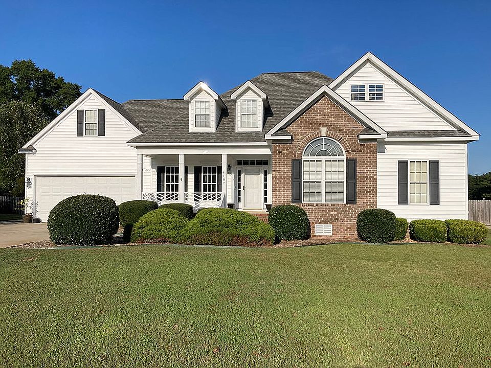 Buyers Agents welcome! Paying 2.5 % of purchase price Call Karen , owner/ NC Real Estate Broker for additional information or to schedule a showing of this home today! Phone; 252-343-1382 Beautiful Custom home with open floor plan and many upgrades . Large open great room with fireplace, built in bookcase , hardwood floors, balcony, vaulted ceiling . open kitchen with granite countertops, stainless steel appliances, custom tile backsplash .large open dining room in addition to an open breakfast nook Large master bedroom with tray ceiling, customs tile bathroom with jetted tub , separate glass shower , double sinks , large walk-in closet. Large tiled laundry room with built in cabinets. Upstairs with large play area and bedroom, separate private office, Large 3rd and 4th bedrooms with vaulted ceilings and large closet Full bath has upgraded tile floors and fixtures and another 1/2 bath off the laundry room Large two car garage and a screened back porch Fenced yard Lots of walk in attic storage