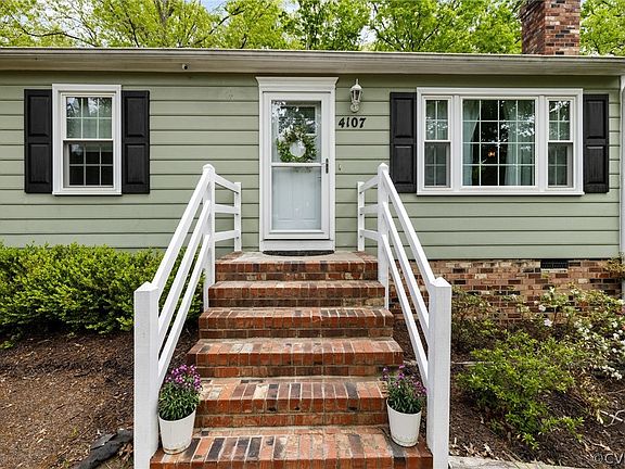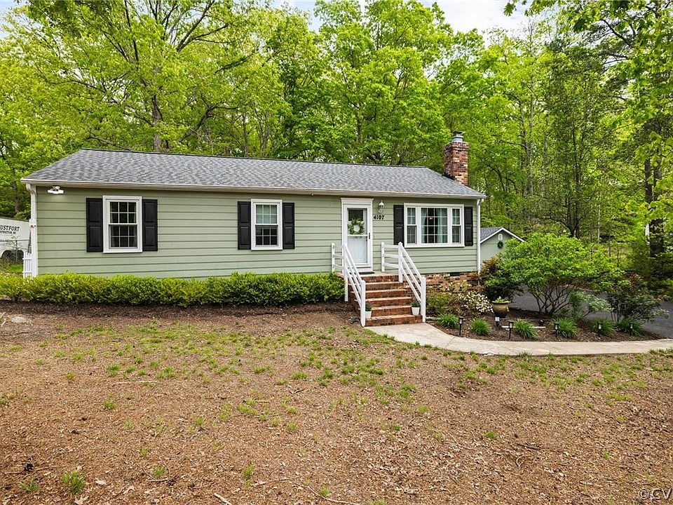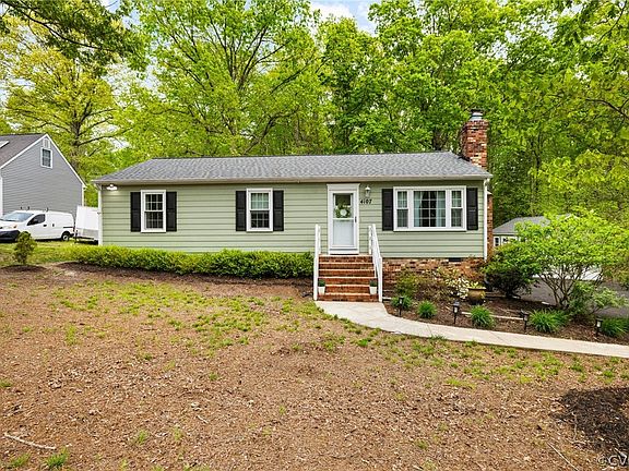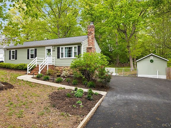 Immaculate 3 BR ranch in super convenient location features tons of recent upgrades. You are welcomed by a new front door with keyless entry as well as a new storm door with retractable screen. Enter into the gorgeous living room with its wood burning brick fireplace and and large picture window. You will discover new LVP flooring taking you from the foyer through the sliding barn door into the beautiful eat-in kitchen. Newly installed quartz countertops (2023), stainless steel appliances, a farmhouse sink and a faux brick accent wall complete this charming area. The home's interior is also highlighted by board and batten trimwork installed in the foyer and down the hallway delivering an elevated look. The full and half baths have each been upgraded with new LVP floors, vanities, toilets and fixtures. All new windows and sliding glass door installed in 2024! Relax and enjoy the nearly half acre fenced lot from the rear deck or the newly installed paver block patio with firepit. Storage won't be a problem with the new 12' x 16' shed (2023) at the end of the newly paved driveway (2023). The roof was replaced in 2023. This stunning home is located just minutes from Rt 288 and Powhite Parkway and within walking distance of shopping and restaurants. What a terrific value ... make your appointment today!