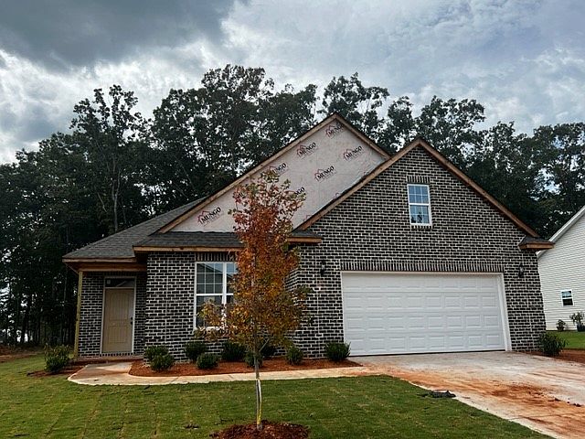This single-story home comes with four bedrooms and two bathrooms. The open great room flows into an eating area and kitchen, which has a walk-in pantry and an island. The primary bedroom, just off the kitchen, leads into the primary bathroom, and a large walk-in closet connected directly to the laundry room. One spare bedroom has been expanded to create a third bathroom!