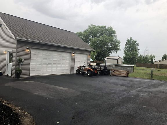 OPEN HOUSE SUNDAY 6/28/2020 2:00 pm - 4:00 pm. Come View this Remodeled Rural Home, close to town, yet NO restrictions and room to run! City Water & Sewer. USDA eligible Home 3 Bdr., 1 Bath, and a True Man Cave including 10 ft ceilings & Cedar on the interior walls. This Amazing 3 Car 32x24 Dettached Garage is only 7 years old!! Heated by a wood burner. Floored attic above with pull down stairs. 5000sf of Asphalt drive 1 year old! Beautiful Liliac lined drive way separates you from the neighbor on the right. The Home has Hardwood floors in 3 bedrooms and under carpet in Living Room and Dining Room. Charming and Cozy! Enclosed Front porch with New Laminate flooring & Laminate kitchen floor. Light and Bright enclosed rear porch with new doors and windows. Vinyl windows through the home & basement as well. High Efficiency Propane Furnace, blown in insulation, and water heater all 1 year old. Brand New siding on the home and new sump pump 6/2020. Second heating system in the home is wood burner, that is plumbed into existing duct work. Fresh paint throughout much of the interior. Basement has room for your workout area, laundry, work bench, and gaming space too! This is an unfinished area but very usable as you will see. It is one open room with furnace in the middle. Garage and house have separate electric services as well. 30 Ft round pool on the back of property, with fenced area & 12X10 Shed for all your pool Equipment and Toys! So Many Updates in this Home!!
