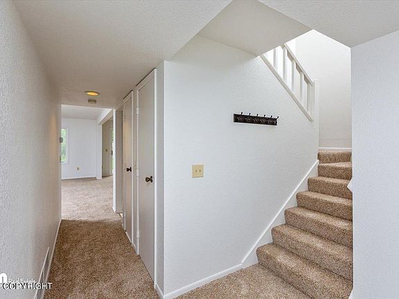 End unit townhome with new interior paint and carpet. Great floorplan with all 3 bedrooms and laundry upstairs and extra 3/4 bathroom off of master with window seats in bed and bath. Enjoy back yard access to Baxter Bog trails and easy commutes to anywhere in Anchorage. Ready to add your own personal touches to make this unit your happy place!
