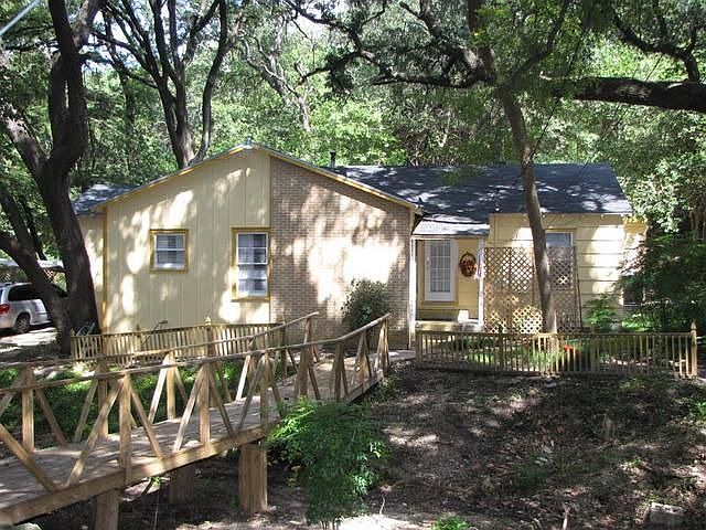 A 3 bedroom 2 bath Quaint Cottage tucked away among large trees with a seasonal creek that flows past with a wonderful bridge over it. French drains keep water away from the home. Remodeled in the last year. Beautiful wood floors, tile counter tops, new cabinets, new appliances. 2 Living areas (Den and living room), wonderful dining area. Den and dining area open to kitchen. walk in pantry. New electric breaker panel, Roof replaced aproximataly 4 months ago. Attached work shop area or work out area on back of home.