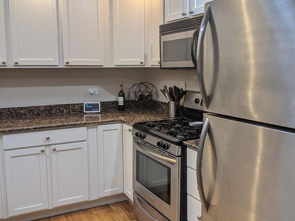 Come home to this gorgeous 2 bedroom, 1 bath beauty on tree lined Sheridan road in beautiful Buena Park. Magnificent courtyard greets you into this corner unit overlooking the center fountain. Gracious foyer in unit opens to large living room with big windows, and fireplace, big enough for a dining area. Big open kitchen has tons of granite counter space, and all stainless steel appliances. Back deck off kitchen is huge with both covered and uncovered areas, offering the perfect oasis for grilling, and entertaining. Both good sized bedrooms are tucked away down their own separate hallway, giving you peace and quiet. Both have great organized closets. In unit laundry is conveniently located next to kitchen. Building has extra storage, and bike room. All this is steps from the Red Line el, target, cubs park, and tons of shops and restaurants.