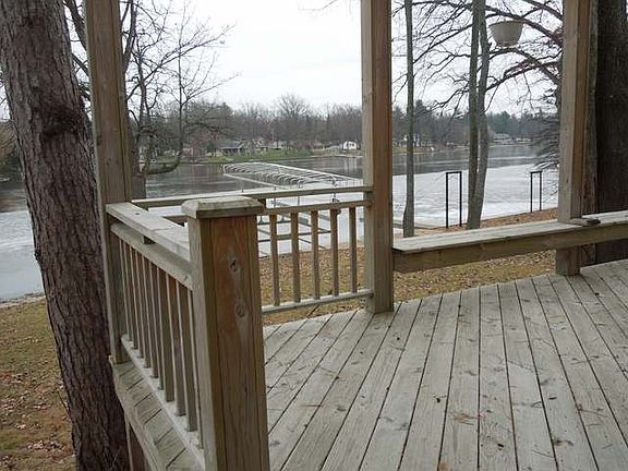 Wixom Lake main waterfront home, New hot water heater, newer windows and a new well pump. All appliances included. 2 car detached garage with a additional shed for more storage. Very pretty stone fireplace. Beautiful views of the lake, nice decking with steel seawall and dock.