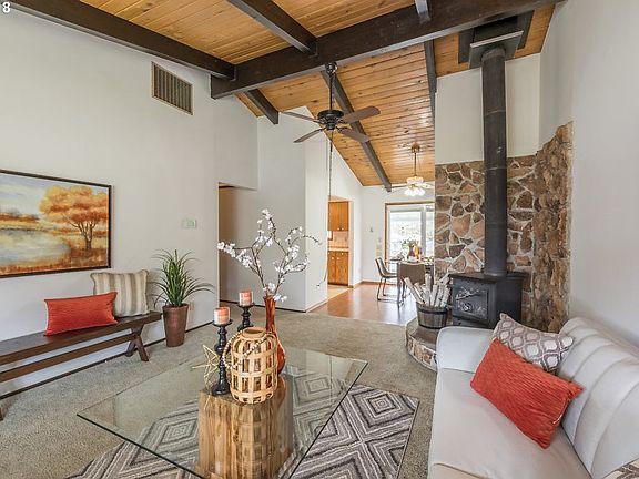 - AllRoomFeatures: Bathroom, Wall to Wall Carpet, Disposal, Beamed Ceilings, Sliding Doors, Free-Standing Refrigerator, Vaulted Ceiling(s), Ceiling Fan(s)