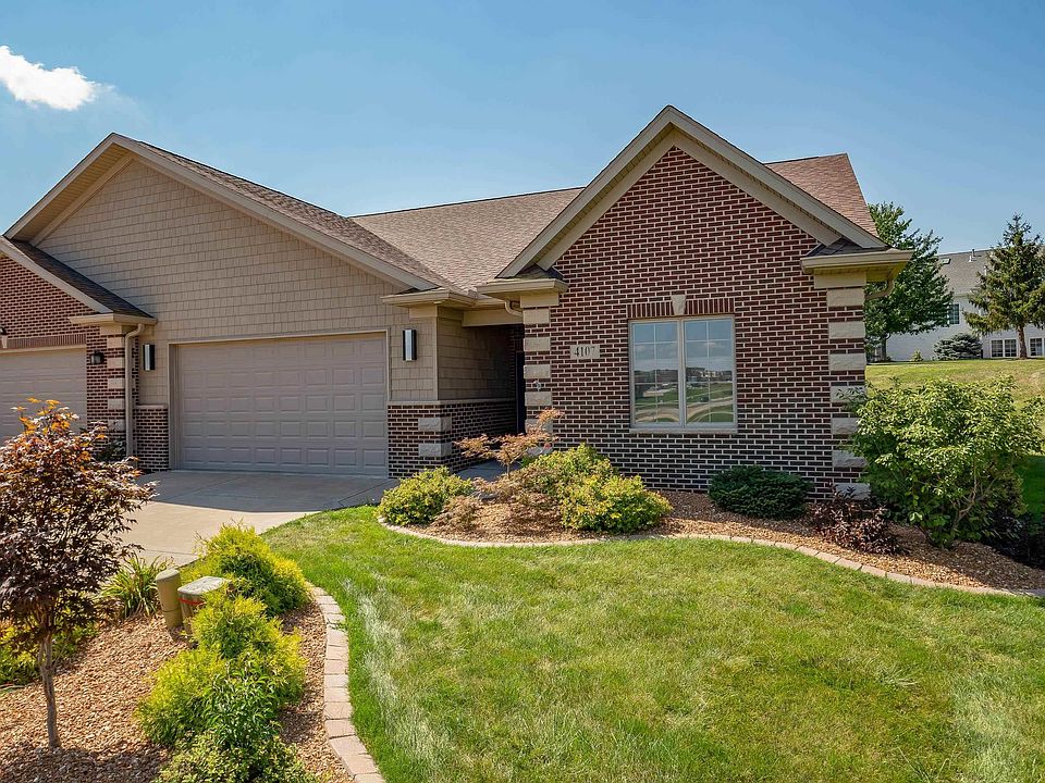 Zero step entry, open-concept, Bettendorf condo offers 3 beds 3 baths over 2,400 fin liv space. Located on cul-de-sac and backing up to green landscaping. Vaulted ceilings connect living, dining, and kitchen. Spacious living room with gas fireplace. Kitchen features elegant white Helming Custom Cabinets with soft and doors, center island, breakfast bar, solid surface counters. Bosch oven, stovetop, and dishwasher. Sharp microwave drawer. Hardwood throughout main level! George Kovacs Lighting. Main level primary suite with Hunter Douglas shades, attached bathroom and walk-in closet. Custom fabricated brushed nickel stair railing with cables. 6 inch baseboard trim. White shaker doors. Anderson windows and doors. Finished basement offers large recreation room, 3bd w egress window, full bath, plenty of storage. Pet free home. Buyer and buyer's agent to verify all measurements and information.