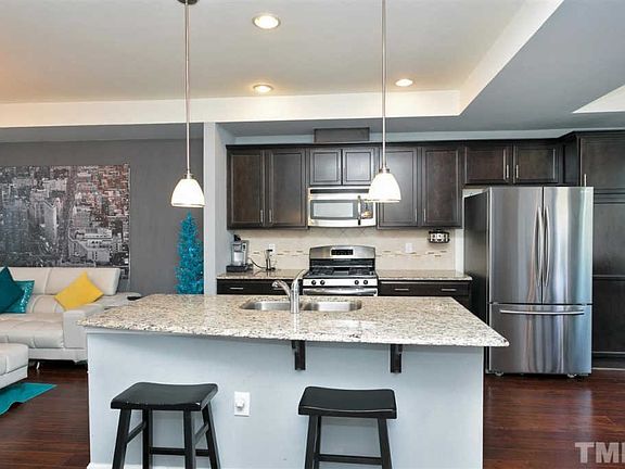Great location! 3 story townhome with beautiful hardwoods, stainless steel appliances, granite counter tops in the kitchen, which opens to the family room. Two bedrooms and 2 full baths on the third floor. The downstairs bedroom can be used as a study/bonus room. Washer/Dryer included. Close to HWY 55, RTP, and lots of shopping!