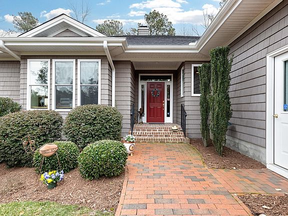 SINGLE FLOOR LIVING in Fearrington's Knolls Close neighborhood with so many wonderful features! The home has an OPEN FLOOR plan w oversize WINDOWS in almost every room, a fireplace + built in shelving. The large kitchen has a CUSTOM blue/black granite center island, gas stove, granite counters and abundant well designed cabinets. The Primary bedroom has an ACCESSIBLE bathroom. Owner added a wonderful SUNROOM in 2018, fully permitted, + an IRRIGATION system for the entire yard. There are two additional bedrooms, a nice utility room for W/D + on demand hot water. Front yard is beautifully landscaped, recently updated for minimal upkeep. The deck is Trex with a gas grill hook-up + the back has gardens inside a fenced yard bordered by a wooded HOA area providing extra privacy.