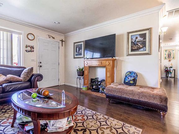 Great Opportunity For First Time Homeowners &/Or Investors! Beautiful 3 Bed/2 Bath Home W/Large Cement Backyard Ideal For Entertaining Sitting On A Corner Lot Near A Fifth Of A Acre! This home features a well manicured front lawn, attached 2 car garage on a corner lot. Entering the home you are greeted in the living room that hold laminate flooring, recessed lighting & large window bringing in ton of natural light. Kitchen is located right off of the living room that has ton of storage space w/a pantry, dishwasher, range hood, breakfast nook & sink positioned to over look the backyard. Down the hallway is a full guest bathroom, laundry room & 2 guest bedrooms that each have carpet flooring. Master bedroom has private full bathroom. Backyard has room for potential RV parking. This home is located near Shopping, Parks & Schools! This is a Must See!
