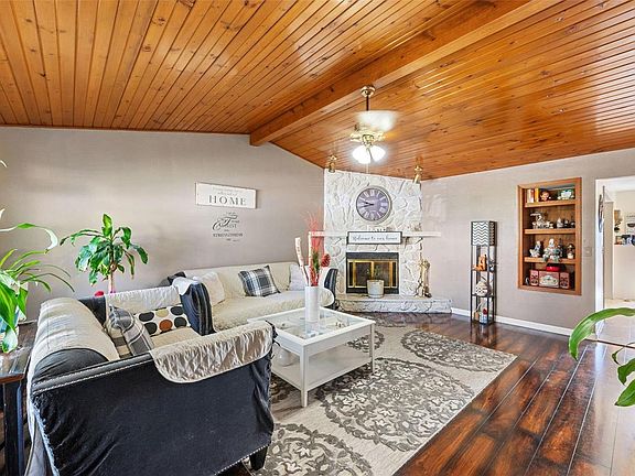 This beautiful ranch-style residence features 3 bedrooms and 3 bathrooms, ideal for both comfort and convenience. Enjoy the warmth of dark wood flooring throughout the main living areas, complemented by a cozy living room with a charming fireplace—perfect for those chilly evenings.