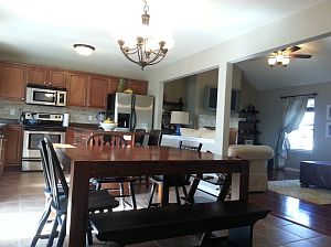 Beautiful home on a quiet circle street with a lot that backs to trees. 4 bedroom, 3 bath w/ hardwood floors, tile backsplash, stainless appliances and much more. Great open floor plan with vaulted ceiling. Huge basement family room with wet bar and tile floor. Well cared for with wonderful paint colors and decorating.