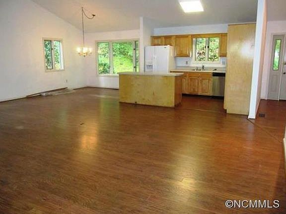 Spacious open floor plan with potential long range views with some tree trimming. Flooring in foyer, great room, and kitchen is new. The bedrooms and bathrooms need some TLC. Enclosed porch with view. Large deck. Large LL workshop. The garage is a single but is 48 feet deep. Buyer to pay $8000 UF