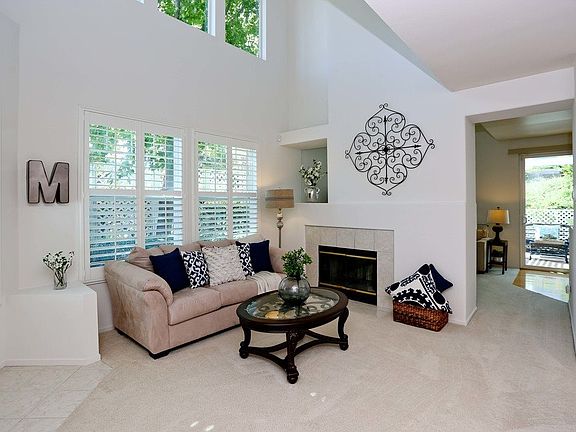 Beautiful "Winter Model" Corner Unit with a private entrance and common area to one side gives a feeling of privacy. Vaulted Ceilings with an abundance of light and freshly painted walls. Cozy two-way fireplace separates the family room and living room with an adjoining dining room. Elegant plantation blinds throughout the home.. Kitchen with updated cabinets and countertops. Upstairs laundry. Large master bedroom with views of Mt Diablo. Backyard boasts a private setting with a trellis that provides shade, is unique to this unit. Attached two-car garage. Small town feeling! Walking distance to downtown Clayton with restaurants, shopping and local events. Near Mt Diablo State Park and walking trails. Located minutes away from Oakhurst Country Club for the avid golfer! HOA amenities include community pool, sports court and greenbelt.