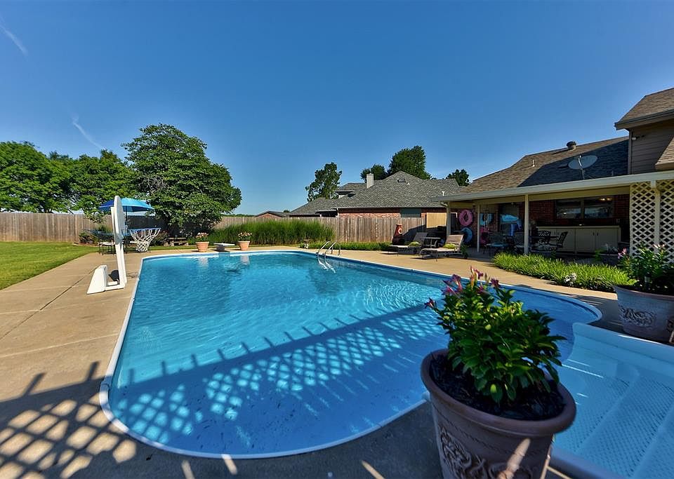 Come see this beautifully maintained home in the gated Crystal Lakes Addition. This community offers scenic walking trails, ponds, and neighborhood events making it perfect for your family. This 5 bed, 3 bath home sits on a half acre lot and features large living spaces, a gorgeous swimming pool, and an above ground storm shelter. Come check out the numerous upgrades in this home including new granite countertops in the kitchen, new hot water tank, new counters in the bathrooms, new roof coming soon, and too many other updates to list! See the last photo for a complete list of updates.