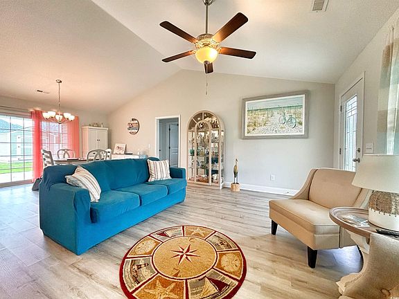 MINT 3 bedroom 2 bathroom ranch home for sale in Elmhurst that shows like a model! Meticulously maintained by current owners and chalked full of upgrades for an incredible price value. Home sits on a huge 1/4 acre corner lot with a fully fenced in backyard, boat/rv parking pad, detached storage shed, huge covered porch (both front & back) and double gate access. Side load 2 car garage not only offers an eloquent aesthetic compared to other homes in the community but also comes with upgraded built-in cabinet storage, interlocking flooring, and pull down attic stairs for additional storage needs. Tasteful maintained landscaping and gutters create an exterior curb appeal that's immediately apparent when you pull up. Walking through the front door the theme continues with the interior - appearing almost brand new (built 2022). Open concept floorplan with vaulted ceilings accentuate the heated square footage and from front to back the home garners tons of natural sun. Light, bright, & clean! Endless LVP flooring throughout. Split bedroom floorplan with 2 spacious bedrooms off to the right separated by a full bathroom with upgraded single square sink granite top vanity & tub/shower combo. Oversized master bedroom on the left side of the home features a huge walk-in closet, tray ceiling with overhead ceiling fan, and a bathroom en-suite that almost feels as big as a bedroom. Double square sink granite vanity top, walk-in shower, deep linen closet for plenty of storage, and private commode corner - the bathroom doesn't disappoint. Upgraded kitchen overlooks the floorplan and offers a full set of stainless steel appliances including a gas range, granite countertops, window over a single long deep stainless steel sink, work island, and plenty of cabinet space. Across from the kitchen is the laundry/utility room (full size washer & dryer convey with home) with overhead storage shelves and door access to the side load 2 car garage. Dining area sits just off the kitchen - across from the living room and next to the sliding door that leads out to the back covered patio area. Upgraded glass accent front door, tankless water heater, + so much more. This home is truly a showstopper and priced to sell - you won't find this value in this location anywhere else. Located in Conway - minutes away from a plethora of shopping/dining options, the riverwalk/downtown, CCU/HGTC, and a short drive to Carolina Forest & downtown Myrtle Beach. Don't miss your chance to call this your next home and schedule your private showing today!