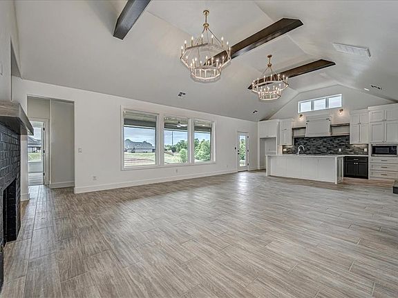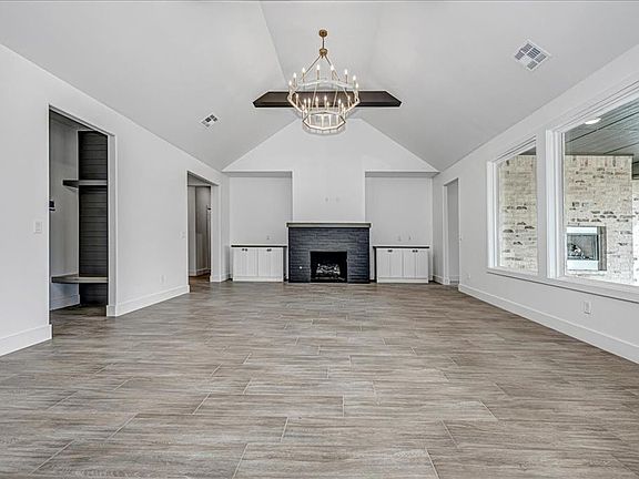 Transitional Home with Patio Pond View Designed with 4 Bed, 3 Baths, Bonus Room. Entry with chandelier, Beamed Ceilings in Living and Kitchen. Open floor plan from Great Room with Fireplace, Accent Wall with built ins on either side. Kitchen with Quartz Counters, Deep Farm Sink, 5 Burner Gas Cook Top and Griddle with Air Fryer, Large 4ft X 8ft Island Breakfast Bar with Farm Sink and Walk in Pantry. Tile Wood Floors throughout Entry Living, Dining, Kitchen, and Pantry. Beautiful Private back yard overlooking a Pond, with oversized Covered Patio, Cable, Gas Fireplace, Gas hook up For a Grill. Your Owners Suite with Deep Soaking Tub, Dual Vanities, Master Closet with 2 Chests. Connects to Utility Room with Deep Farm Sink, 6 Upper Cabinets for storage and window. Out to Hall Mud Room. All Fans are Remote controlled for your convenience. Gated, Community Pool and Playground. Easy Access to I-35 and Shopping.