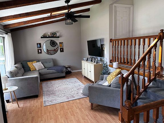 Beloved home with lots of updates. HVAC new in 2022. Water Heater new in 2021. Other recent updates include: Light fixtures, kitchen countertop, paint and garage door springs. Alluring design aspects like the exposed beams in the living room and the faux brick face in the dinning area. Big back yard with a fire pit and the swing set stays. Move in ready!