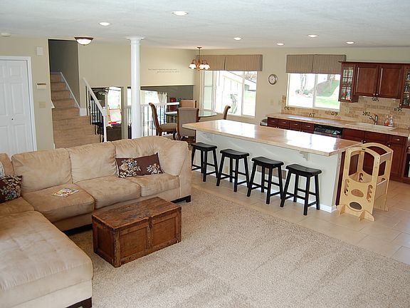 Come see this amazing updated home with its large open great room, dining space and kitchen that includes a 9 foot island and double oven. This home offers another generous sized living room with a wood burning fireplace. This level includes a sunroom that walks out to an amazing backyard with a composite deck that includes an outdoor kitchen. Upstairs, the main bedroom boasts a walk-in closet, double vessel sinks & tiled shower. Upstairs you will also find 2 other good sized bedrooms & 2 bathrooms. The basement includes a third living room space, daylight window, & 4th bedroom. There is an attached 3 car garage. Just inside the house from the garage is a mudroom area and the laundry room. Lawn care and snow removal are the tenants responsibility.