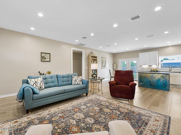 CURRENTLY UNDER CONTRACT, SELLER WILL CONSIDER BACKUP OFFERS. Beautiful, newly built, three-bedroom, two-bathroom home, built in 2022. You'll be captivated as soon as you pull up to this charmer with its clean, modern exterior, lush grass, and vibrant flower garden. Enjoy the Florida sunshine on the covered front porch as there is plenty of space to add outdoor furniture. Step inside to find an open-concept main living area with ceramic tile throughout. Enjoy the light and bright kitchen with a lighted walk-in pantry, undercabinet lighting, and drop in stove with double oven! The kitchen island features a unique design reflecting Panama City's coastal-living lifestyle. The storage in this home is generous as you'll find not one, but three closets in the primary bedroom alone! The primary bathroom features a double-vanity and each of the two bathrooms boast gorgeous tile surround and shower. All the closets are lighted and extra lighting throughout. For one of the most exciting features of this home, step through the double French doors (located in the kitchen/dining area) to find the breathtaking, perfectly manicured and landscaped backyard. With an open patio, there's plenty of space for outdoor living to sit out and enjoy. There is an existing 20x20 slab in the back giving you a blank slate to explore options like potentially adding a storage shed, or an office! This is a GREAT home! Don't miss out!