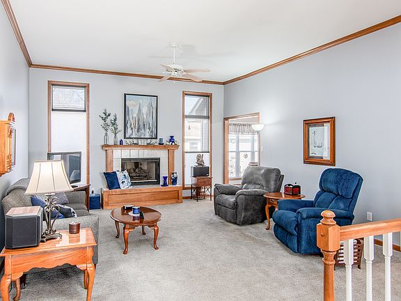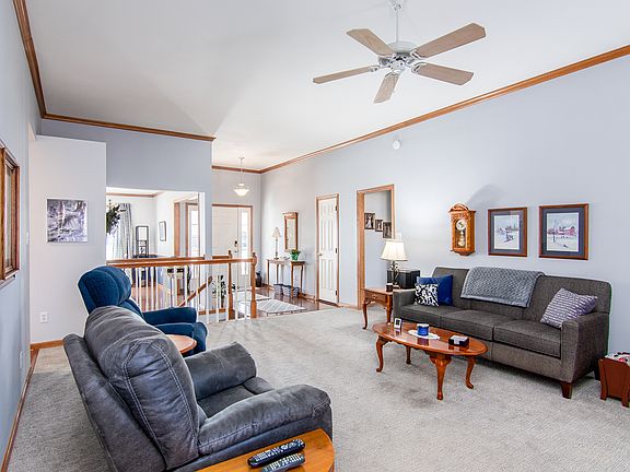 Great home in great location on the EAST side of Manhattan!!! This 4 bed 3 bath home boasts vaulted ceilings, beautiful fireplaces, wood floors and new carpet throughout! The main floor consists of a formal dining area, large living area, eat-in kitchen with tons of cabinet space, and three bedrooms (including the master). The master bedroom includes an en suite master bath with dual vanities and a walk-in closet. The finished basement includes another bedroom and large family room with wet bar! On top of that, this home has a 2 car garage and large backyard with shed/shop that has electricity ran to it!